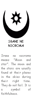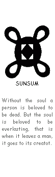 Wiedersehen", was vermutlich auf die Verwendung von Adinkra im