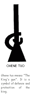(Frucht des Kalebassen-Baums) verwendet. Die Symbole sind in der