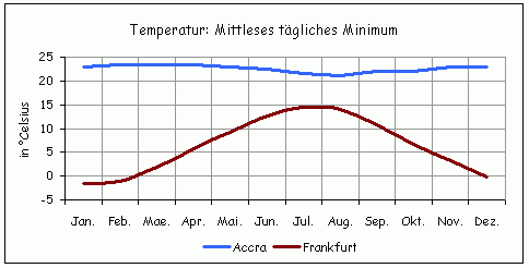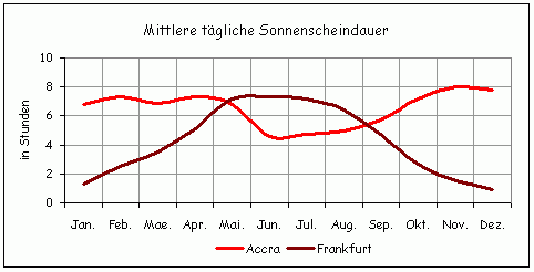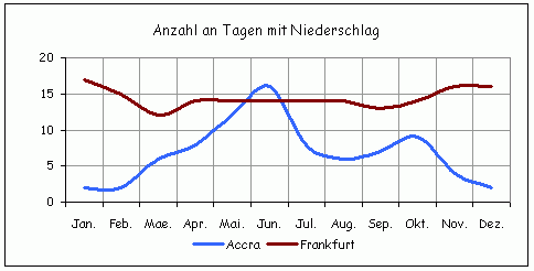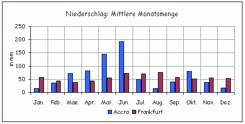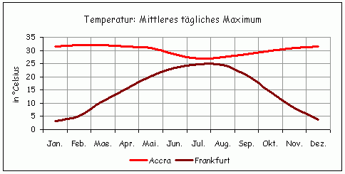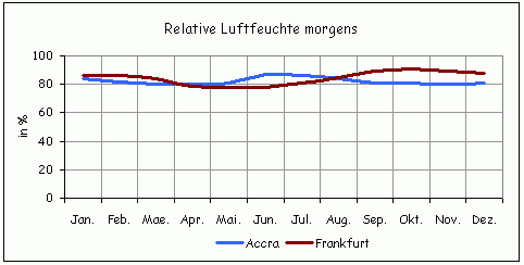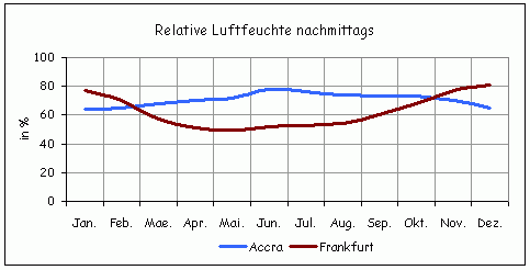 Luftfeuchte am Nachmittag in Accra - im Vergleich zu Frankfurt am Main. Gemessen in